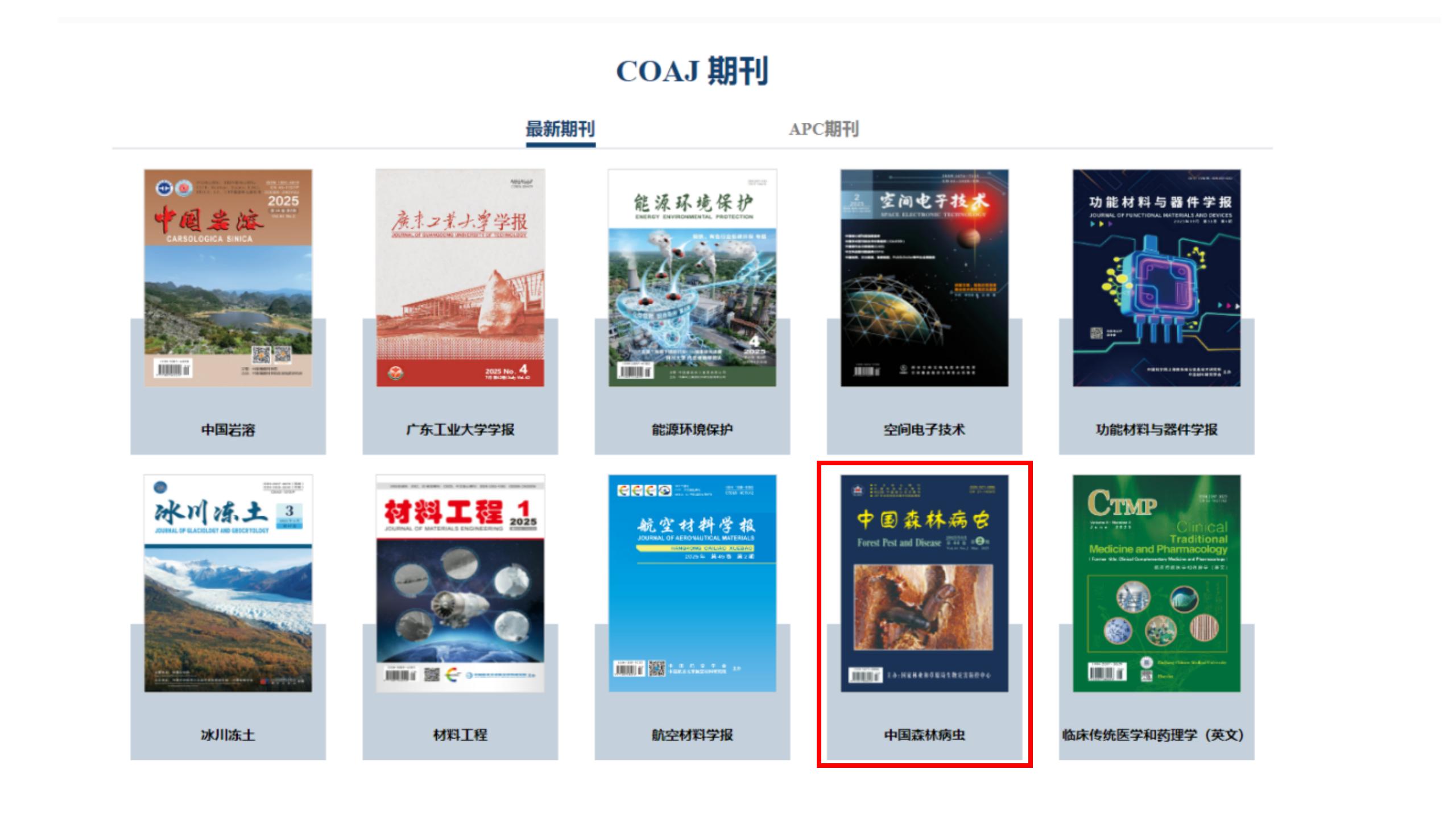 近日,《中国森林病虫》被中国开放获取期刊数据库(COAJ)收录,代表其在开放获取出版领域取得新突破。
