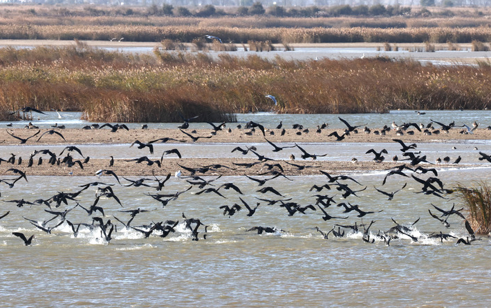 初冬是山东黄河三角洲国家级自然保护区最热闹的时节,数以万计的飞鸟栖息在一望无际的芦苇和荻花丛中。全球9条鸟类迁徙路线中,东亚-澳大利西亚和环西太平洋2条线路途经此处,每年迁徙经过数百万只鸟类,让这里被誉为鸟类的“国际机场”,成为国际候鸟迁飞保护的关键区域。