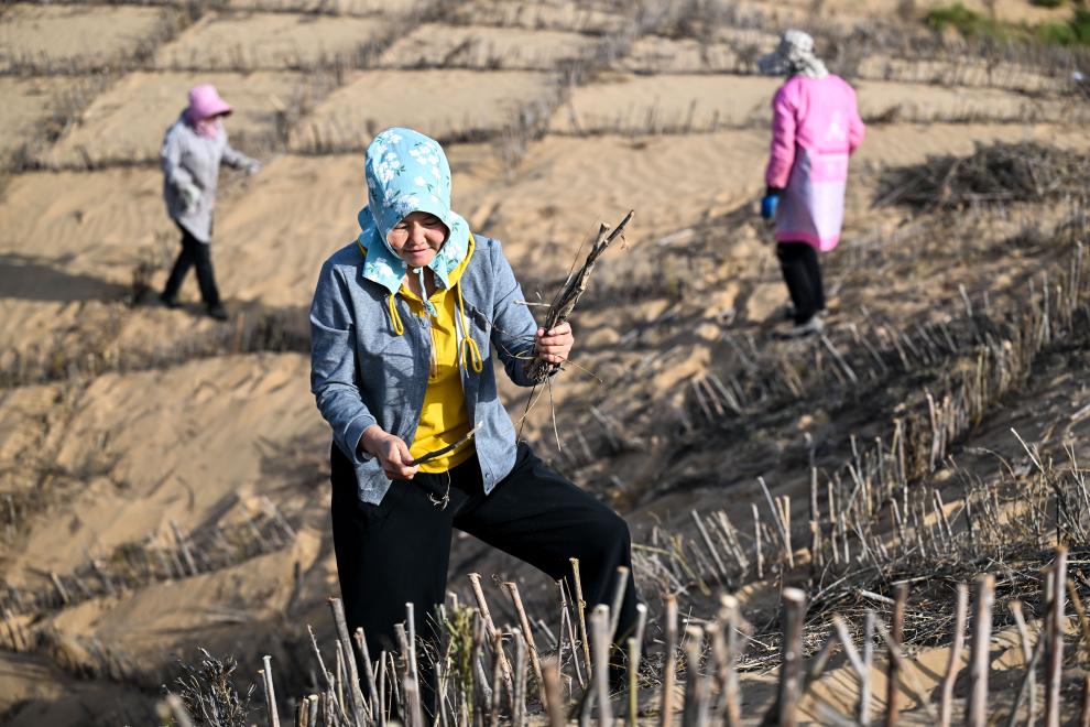 如今,敖特根花依然保持着“朝5晚9”的工作节奏——早上5点以前起床,到工地治沙,晚上9点才回家。但她却乐在其中,因为她深知自己正在创造的不仅是经济价值,更是生态价值和社会价值。