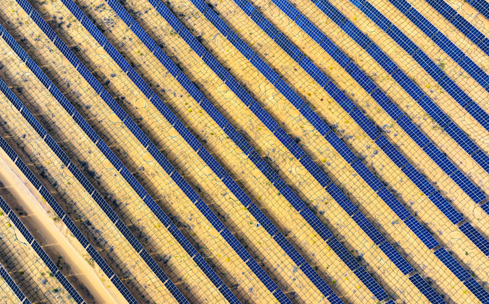 9月16日,第十届库布其国际沙漠论坛与会者参观库布其沙漠鄂尔多斯中北部新能源基地先导工程(无人机照片)。(王正 摄)