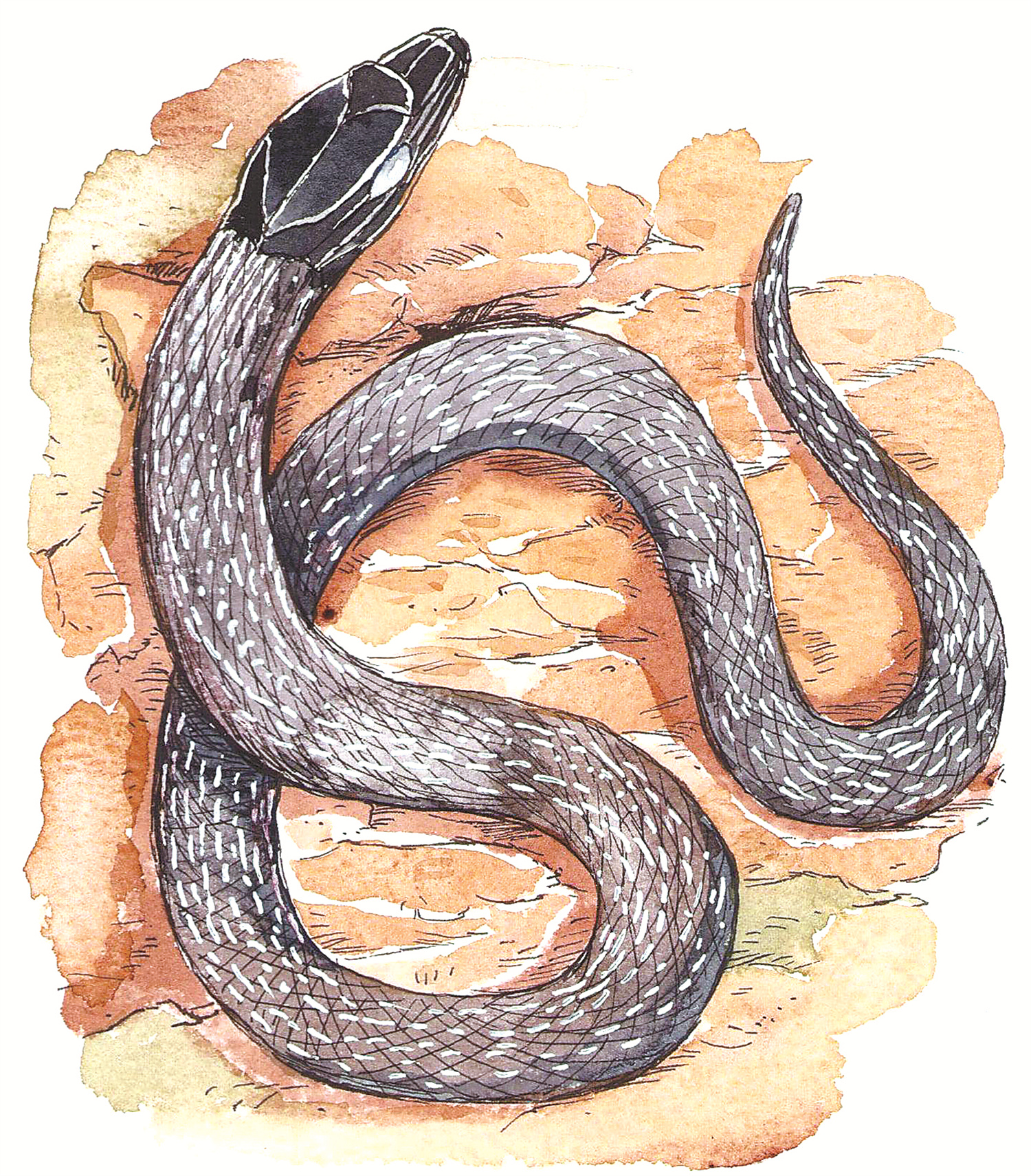 清晨,缙云山山腰树林下的枯枝落叶堆,翻开一块覆满苔藓的扁平砂岩,发现一条约40厘米长的黑脊蛇蜷缩其中。黑脊蛇是一种无毒的小型蛇类,同时也是“伪装大师”。其体色随林下光线动态变化,强光下呈现出金属光泽,弱光时则与腐叶色调趋同。它也是目前发现的除钩盲蛇以外体型最小的蛇类之一,生活在枯枝落叶下,常以白蚁等小昆虫为食。