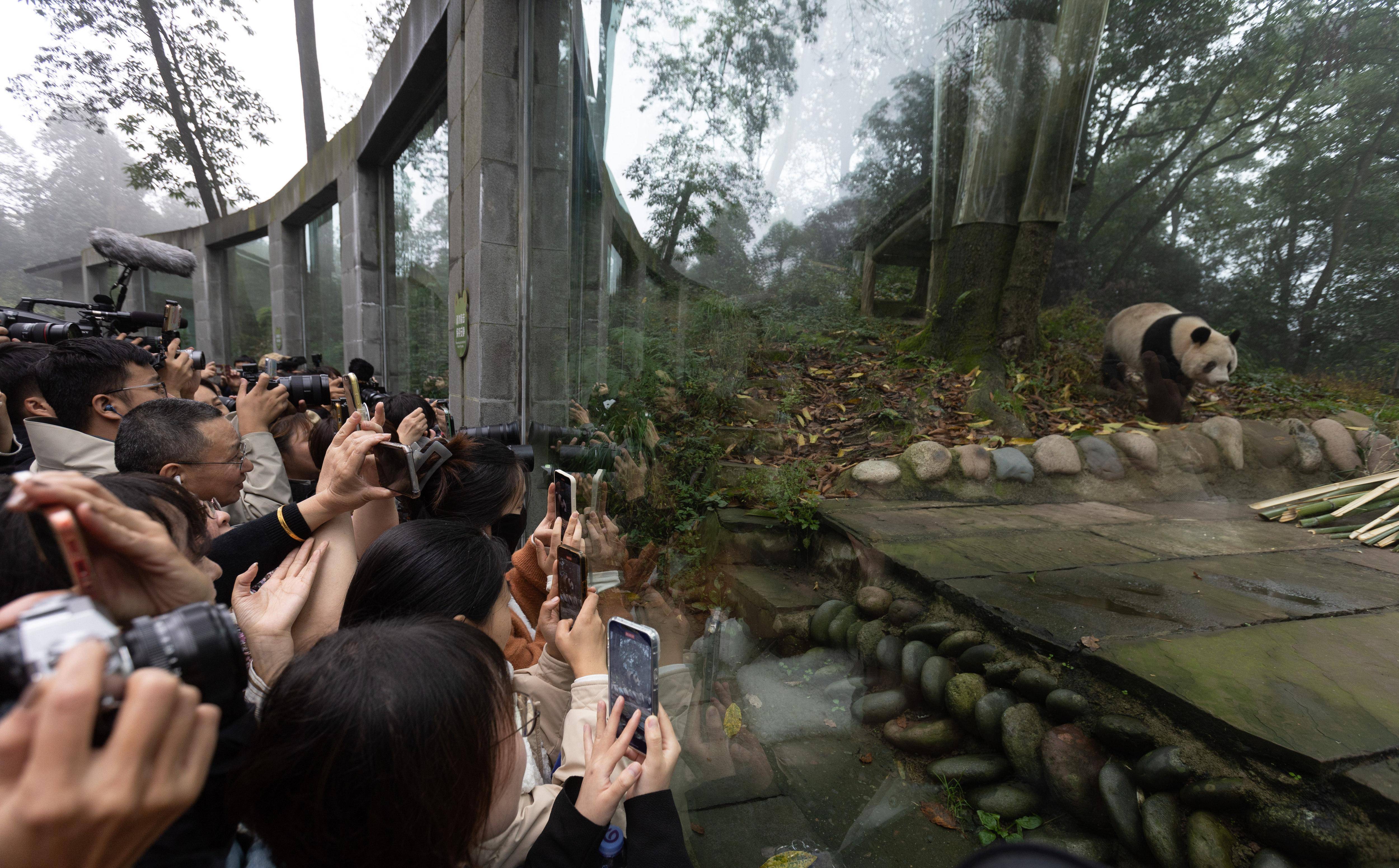 抵达雅安基地后,“探亲团”成员们一下车就迫不及待地去找寻“香香”。高氏贵博是日本知名熊猫博主,从2011年开始,除了因为动物园休园日、女儿出生等特殊原因,几乎每天都去上野动物园拍摄大熊猫,是“香香”的铁杆摄影师。记者看到,第一次来到“香香”新家窗前的高氏贵博又拿出了相机拍摄。