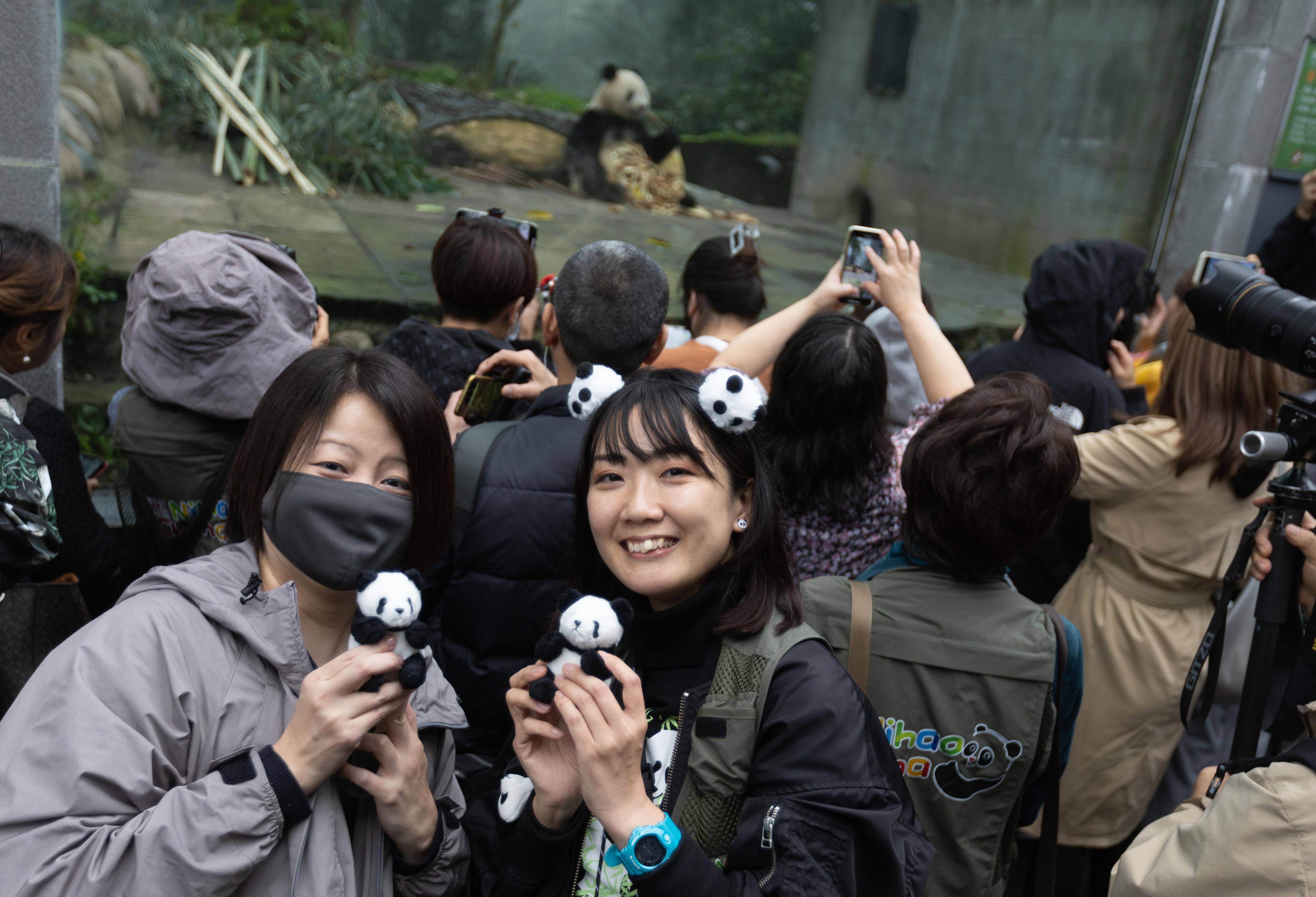 从日本东京到中国成都的飞行时间约为6个小时,从成都到基地车程又需要2个小时,跨越山海,“探亲团”8日终于和“香香”相见。