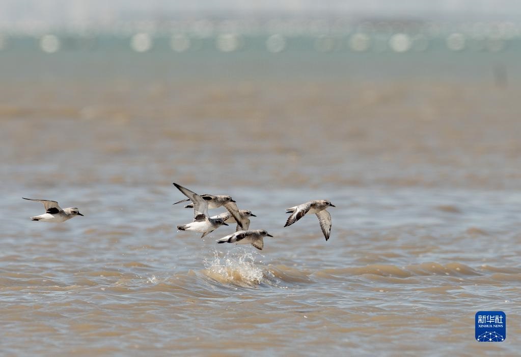 一群水鸟掠过泉州湾河口湿地海面上空(11月18日摄)。新华社记者 魏培全 摄