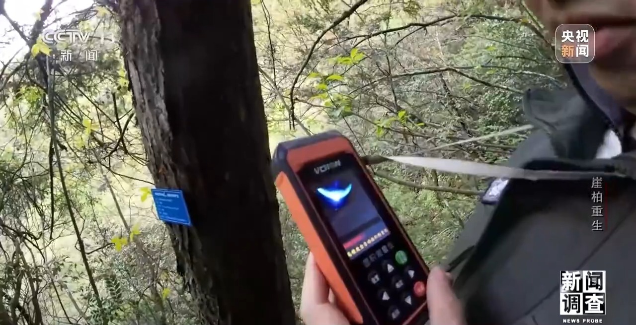 重庆雪宝山国家级自然保护区管理事务中心副主任邬黎:后期我们就把它导入我们智能管护系统,在地图上就知道这棵树在哪里,所有的东西在地图上能够很清楚地看到。
