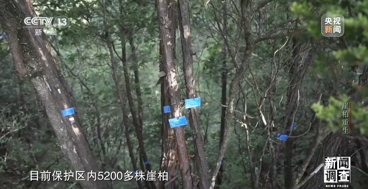 给每棵崖柏挂牌,就像身份证,每一株崖柏的直径、树高、有无开花挂果等信息都会被详细记录在册,通过科学的数据对崖柏进行更有效的保护和科研利用。目前,保护区内5200多株崖柏已经有了专属身份证。