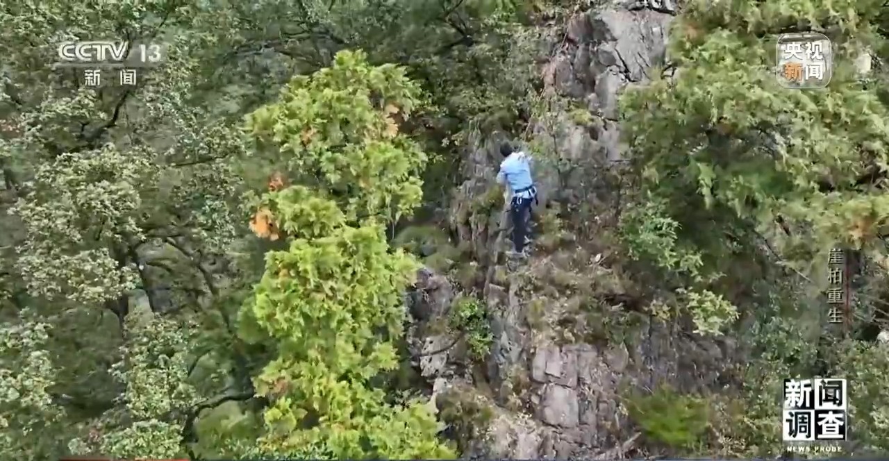 和挂牌时候一样,科研人员需要多人协作,套好安全绳,手脚并用攀爬在悬崖峭壁间采摘果实。有了种子,保护区可以再一次开启种子繁育的工作。